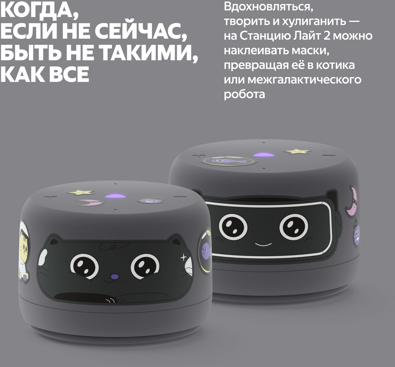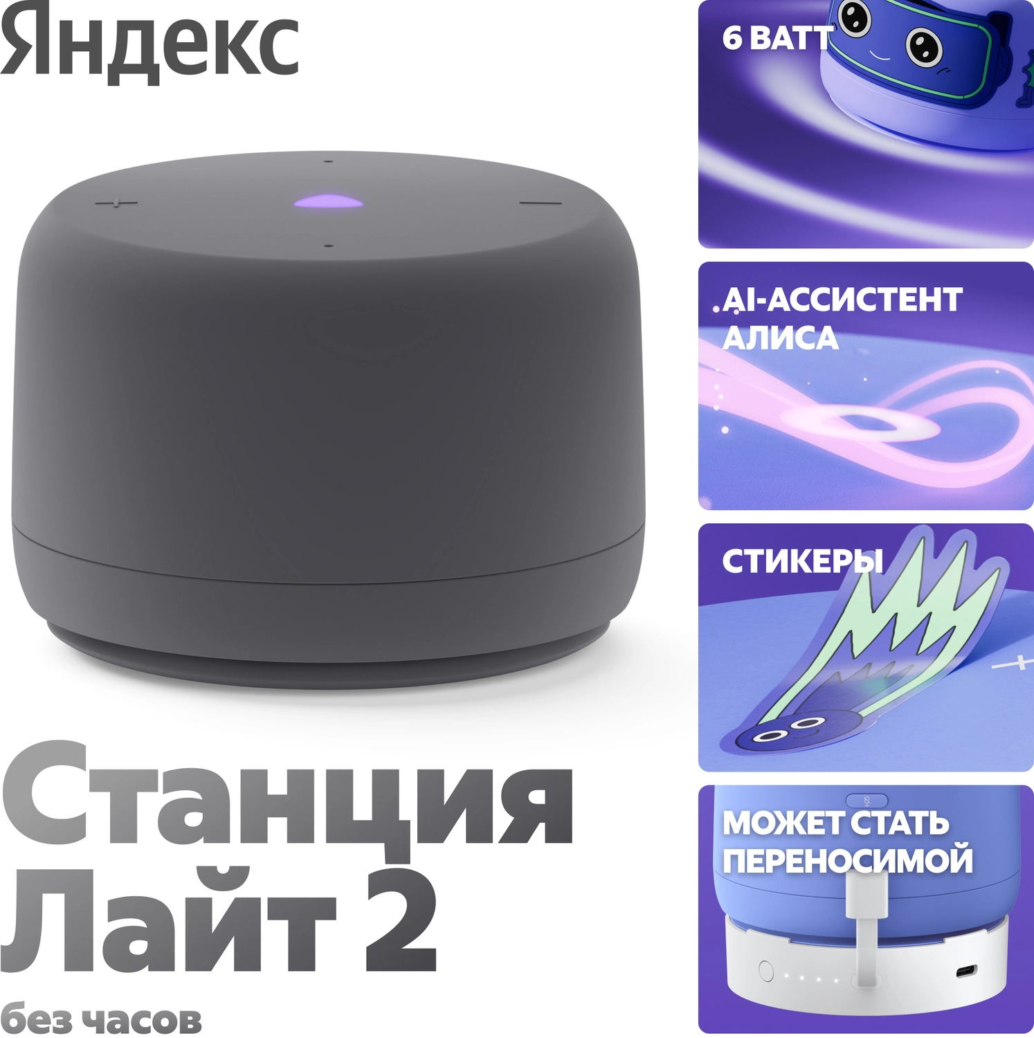 Умная колонка Яндекс Станция Лайт 2 с Алисой, без часов, 6 Вт, серый, YNDX-00028GRY