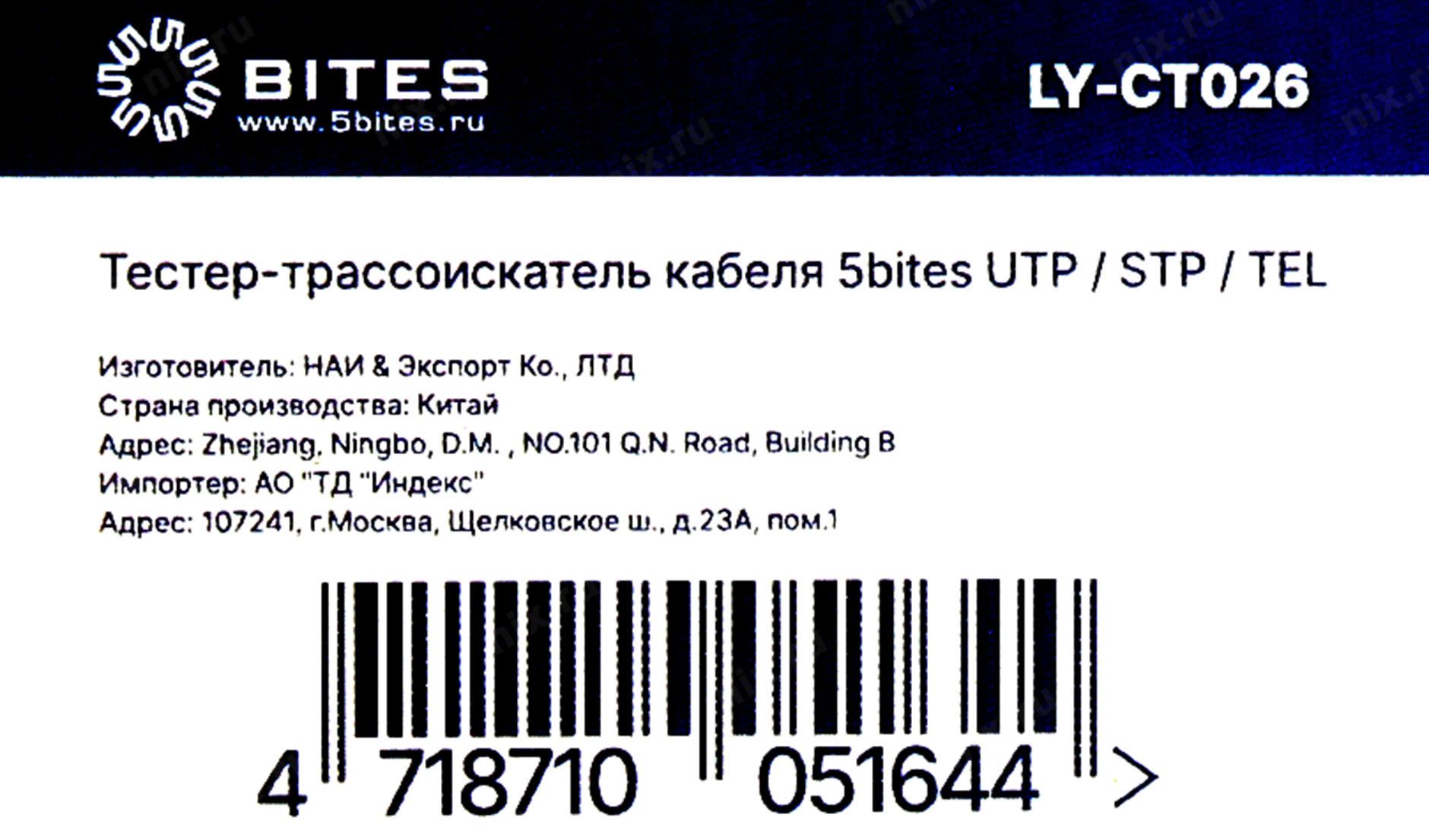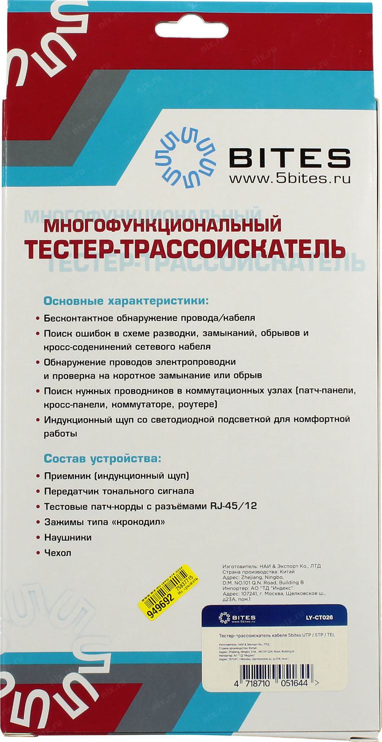Устройство 5bites < LY-CT026> Тестер-трассоискатель для RJ45/ 12