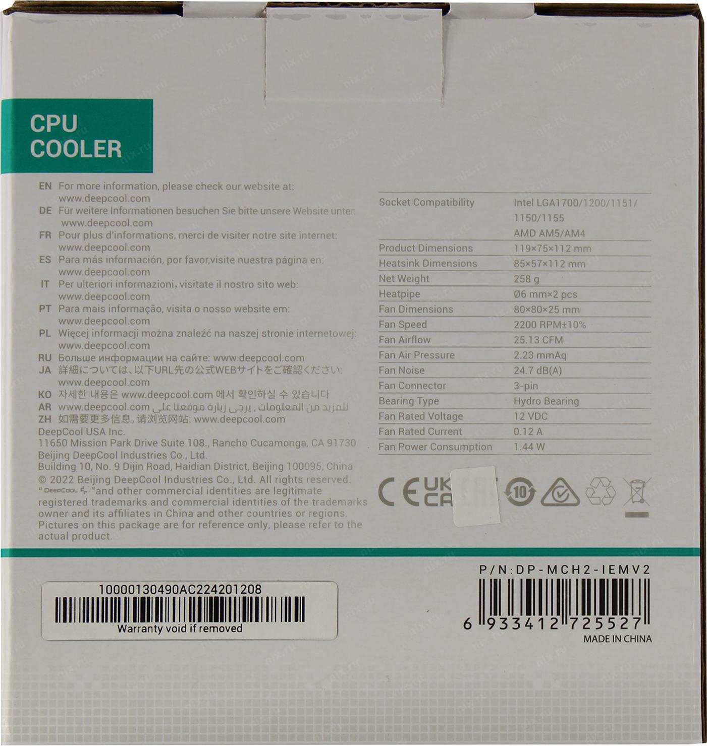 Устройство охлаждения (кулер) Deepcool Ice Edge Mini FS V2.0 Soc-AM5/ AM4/ 1200/ 1700/ 1851 черный/ синий 3-pin 25dB Al+Cu 100W 276gr Ret (DP-MCH2-IEMV2)