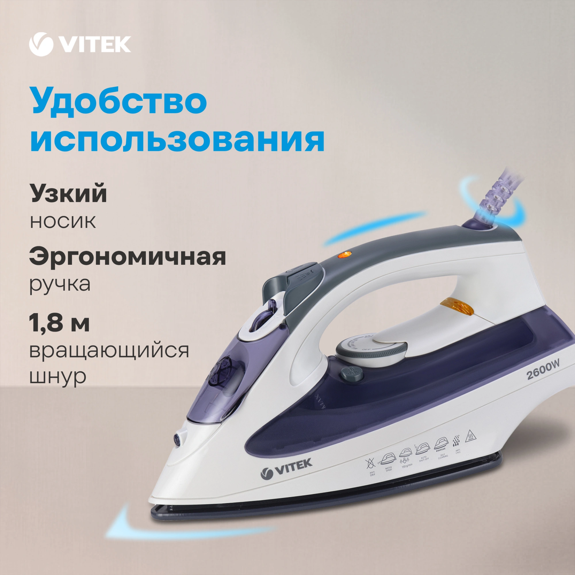 Утюг Vitek VT-8356 2600Вт белый/ серый