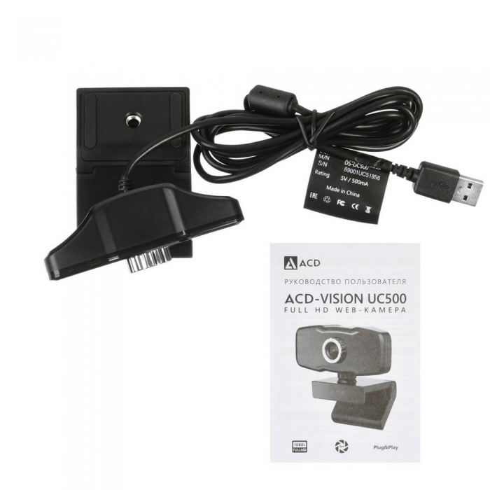 Веб-камера ACD-Vision UC500 CMOS 2МПикс, 1920x1080p, 30к/с, микрофон встр., кабель USB 2.0 1.5м, универс. крепление, черный корп. RTL (60) (551783) (DS-UC500) ACD-DS-UC500