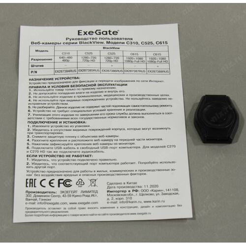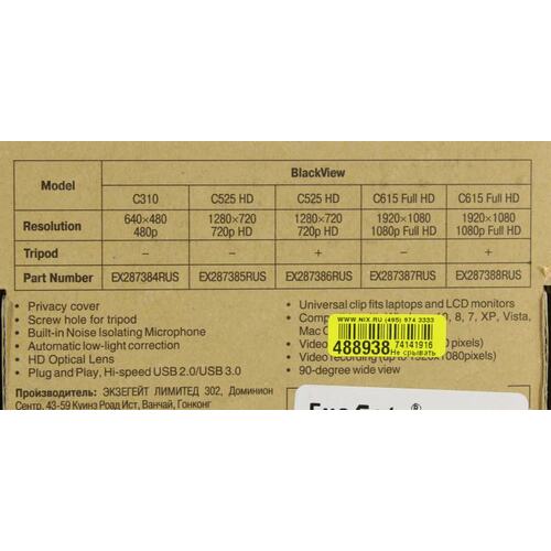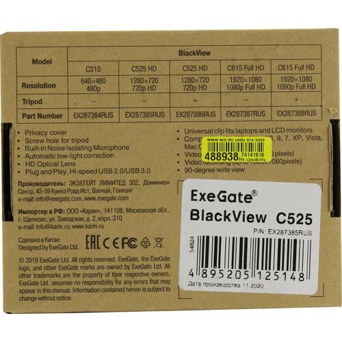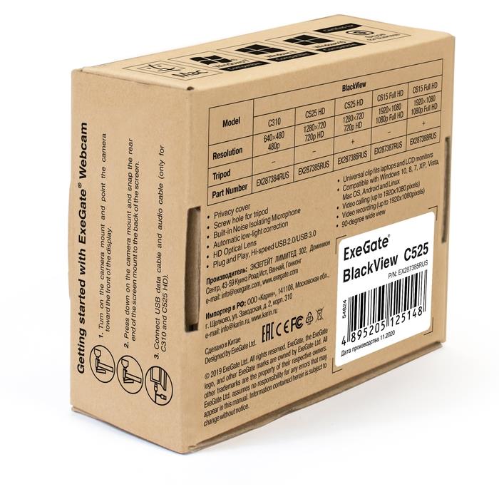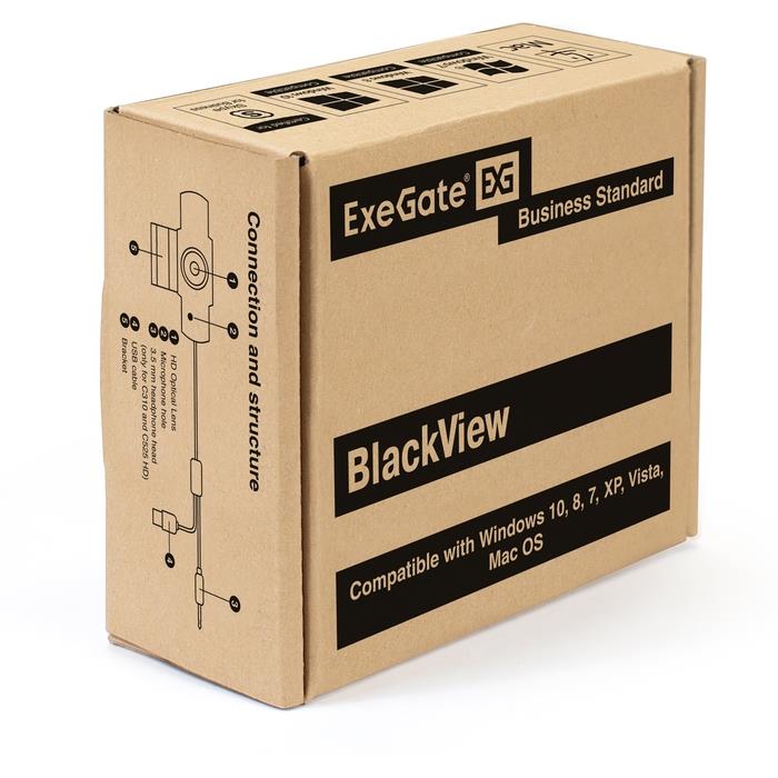 Веб камеры Exegate EX287385RUS Веб-камера ExeGate BlackView C525 HD (матрица 1/3"1,3 Мп,1280х720,720P,30fps,4-линзовый объектив,USB+35mm Jack,фиксированный фокус, микрофон с шумоподавлением, универсальное к