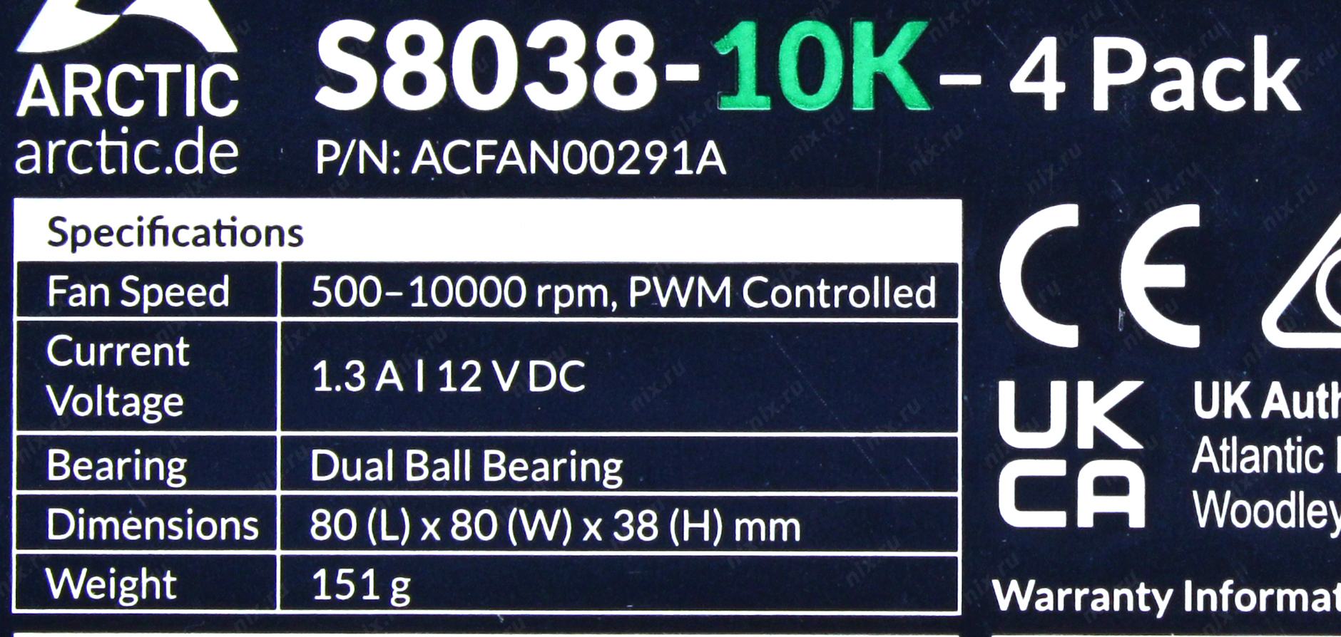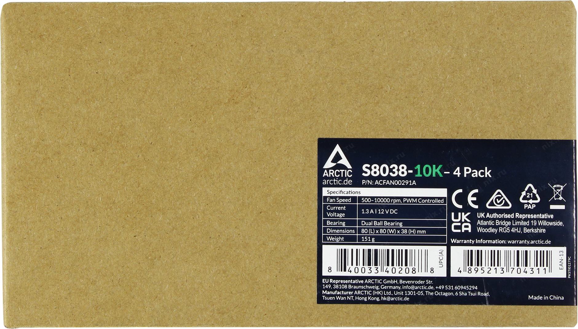 Диаметр, мм: 80 Толщина, мм: 38 Количество вентиляторов в комплекте: 4 Тип подшипника: Шариковый, двойной Максимальная скорость вращения, об/ мин: 10000 Минимальная скорость вращения, об/ мин: 500 Максимальный поток воздуха, куб. фут/ мин: 102 Максимальное давление воздуха, мм вод.ст.: 51 Тип регулятора оборотов: PWM Тип коннектора: 4 pin Напряжение питания, В: 12 Стартовое напряжение, В: 5.8 Потребляемый ток, А: 1.3 Длина кабеля, мм: 300 Вид крепления: Винты Цвет: Черный Размеры: Ширина, мм: 80 Высота, мм: 38 Глубина, мм: 80 Ссылка на описание: https: / / www.arctic.de/ en/ S8038-10K/ ACFAN00291A Комплект поставки: Вентилятор 4 шт., кабели, крепежный комплект