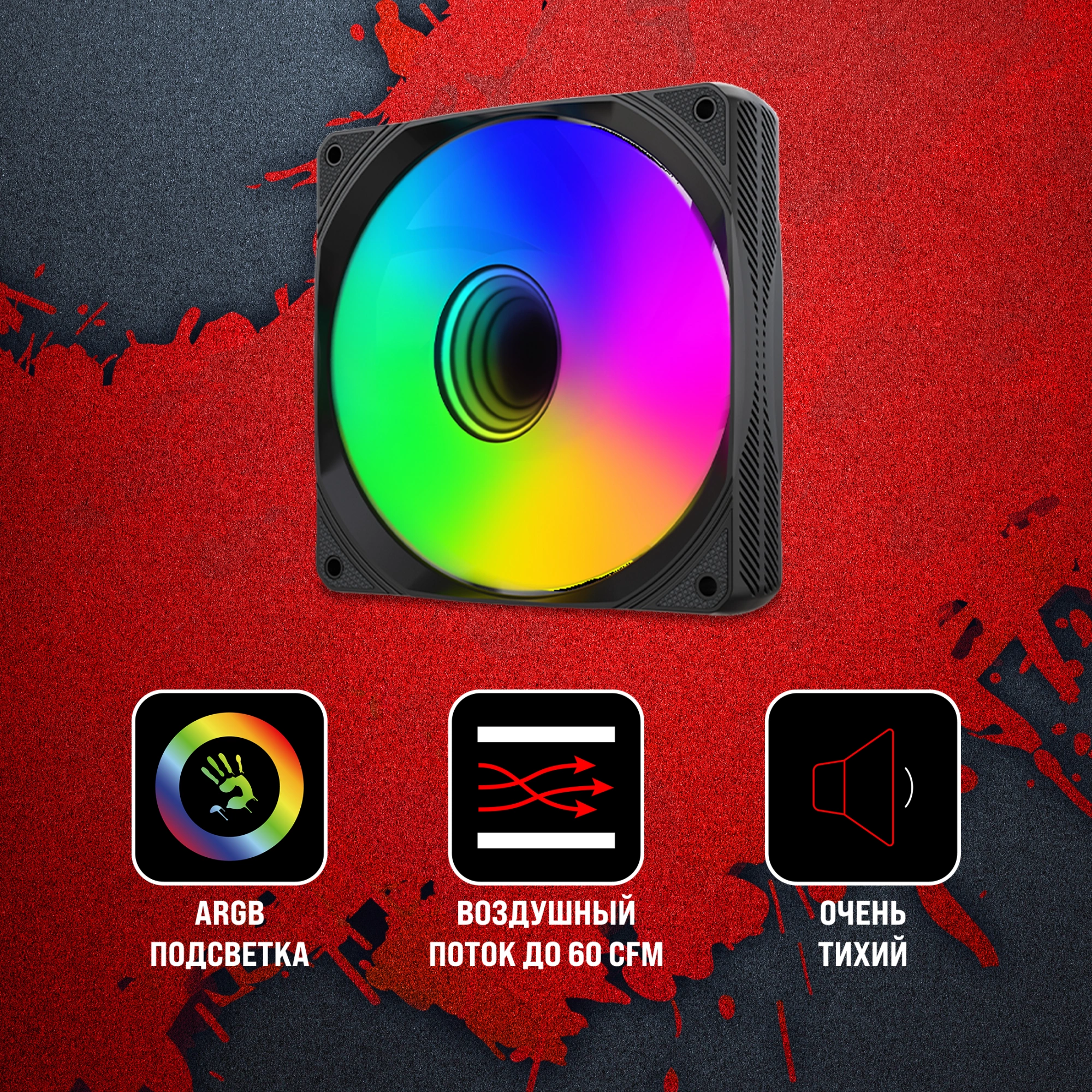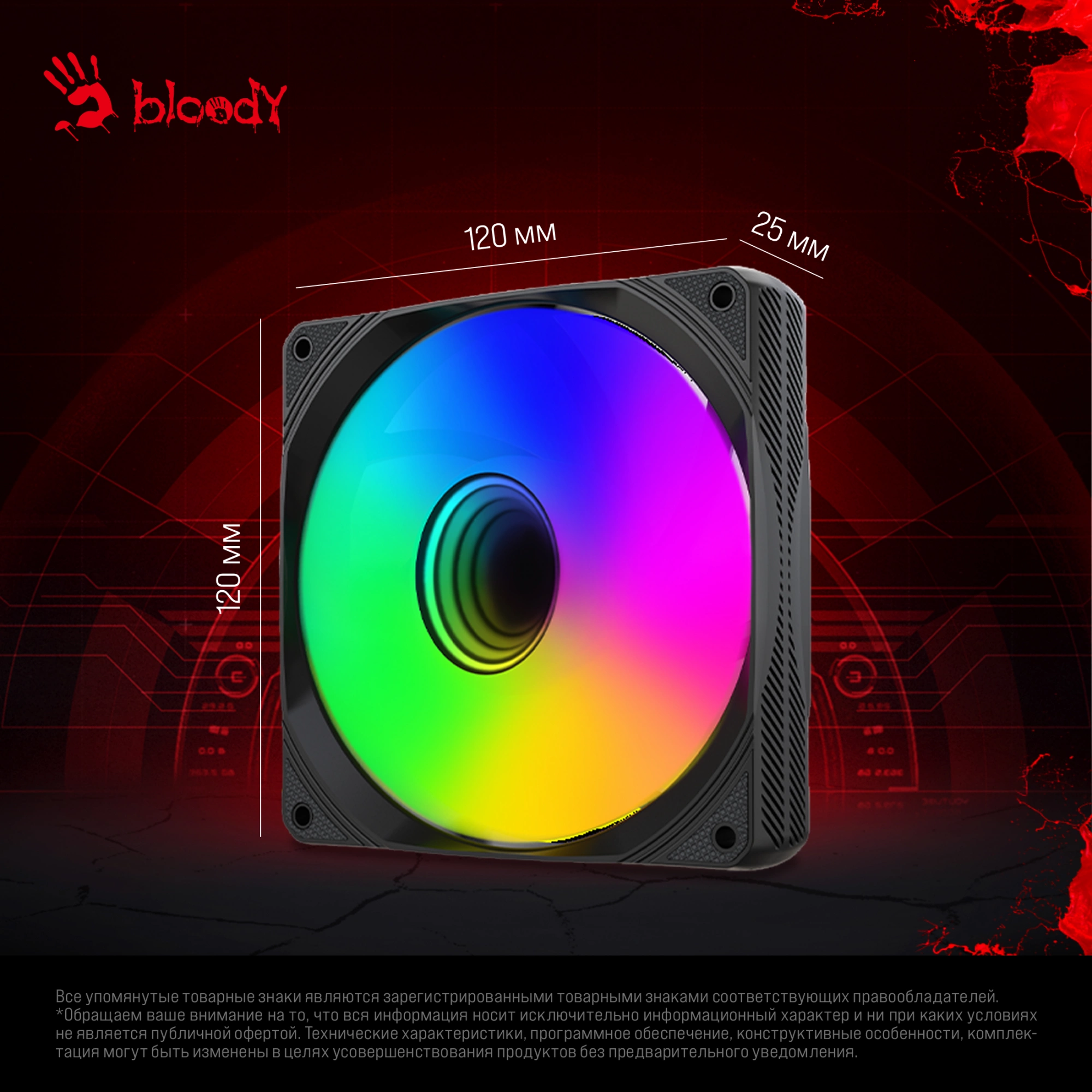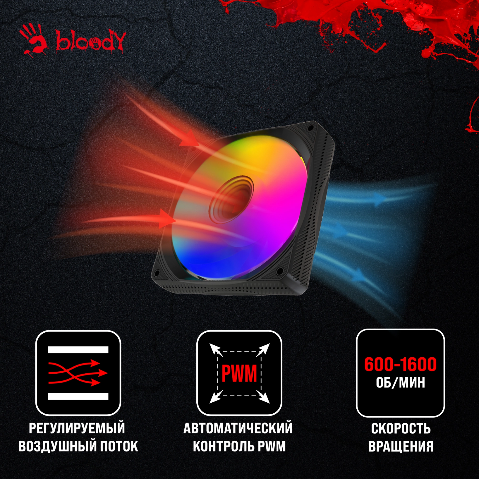 Вентилятор для корпуса Bloody BD-CF120ARGB1 ARGB 120х120x25 черный 4-pin 26дБ (BD-CF120ARGB1-BK) Ret