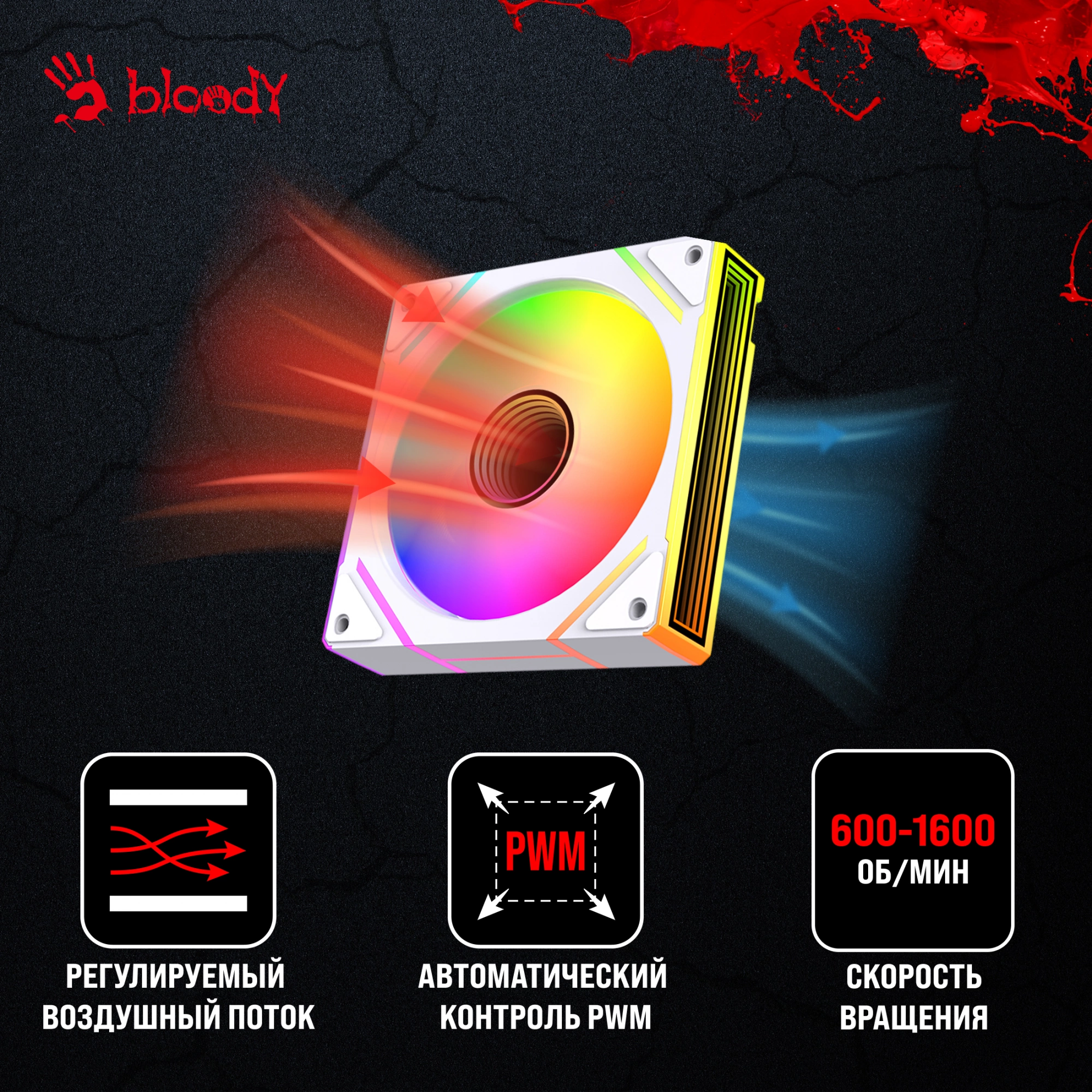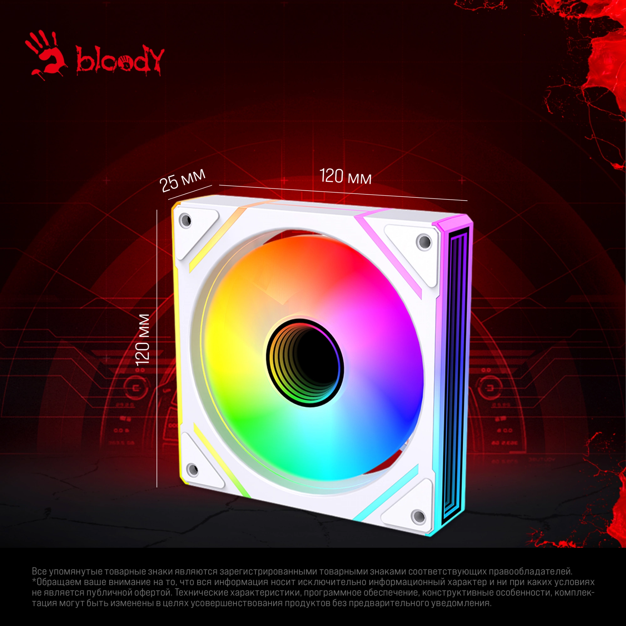 Вентилятор для корпуса Bloody BD-CF120ARGB2 LCD ARGB 120х120x25 белый 4-pin 26дБ (BD-CF120ARGB2-WH) Ret