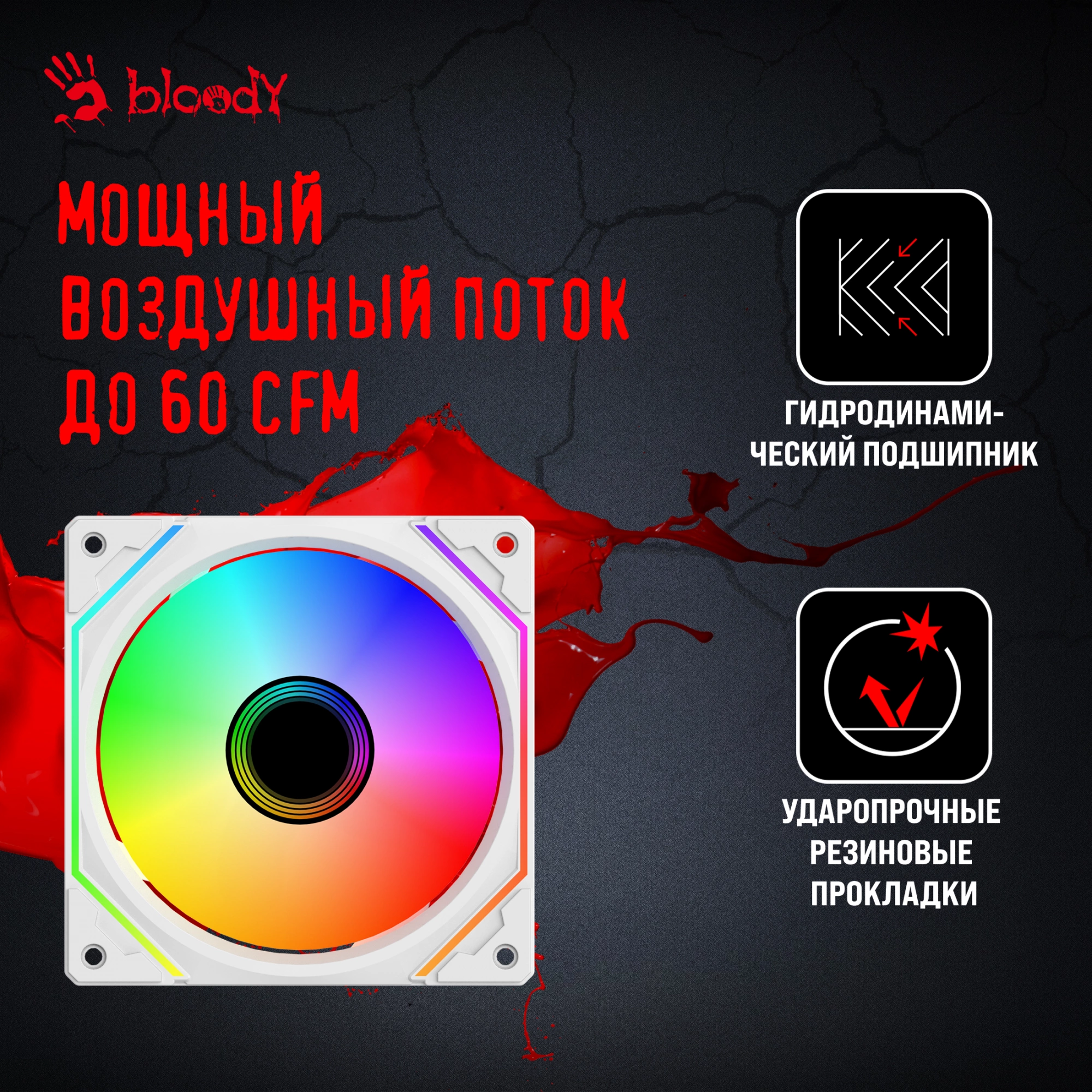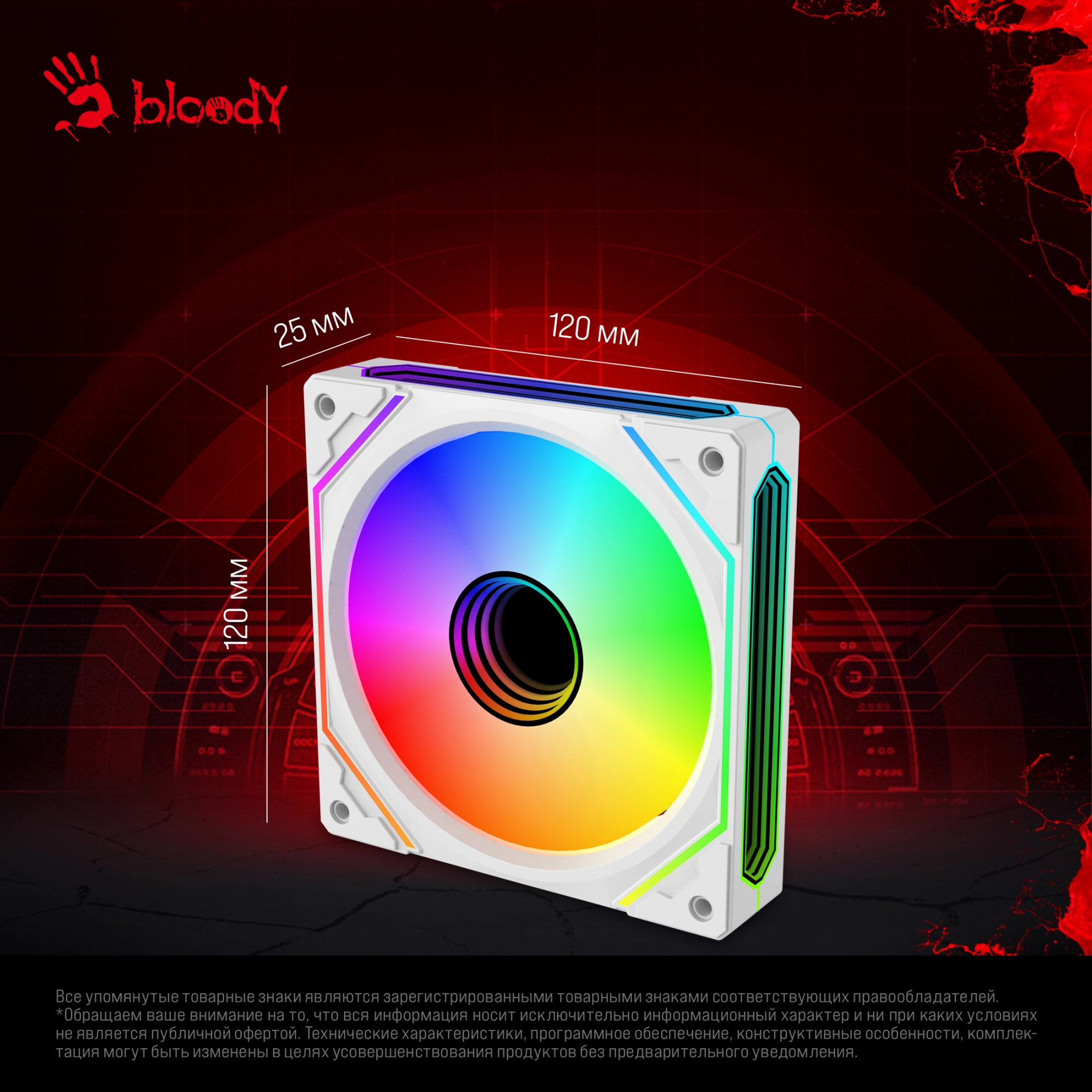 Вентилятор для корпуса Bloody BD-CF120ARGB5 LCD ARGB 120х120x25 белый 4-pin 26дБ (BD-CF120ARGB5-WH) Ret