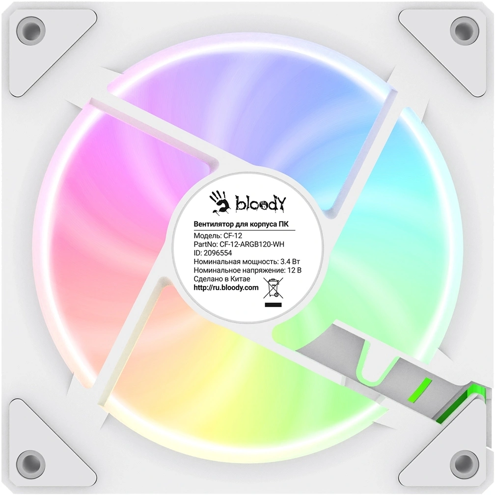 Вентилятор для корпуса Bloody CF-12 LCD ARGB 120х120x25 белый 4-pin 32дБ (упак.:1шт) (CF-12-ARGB120-WH) Ret