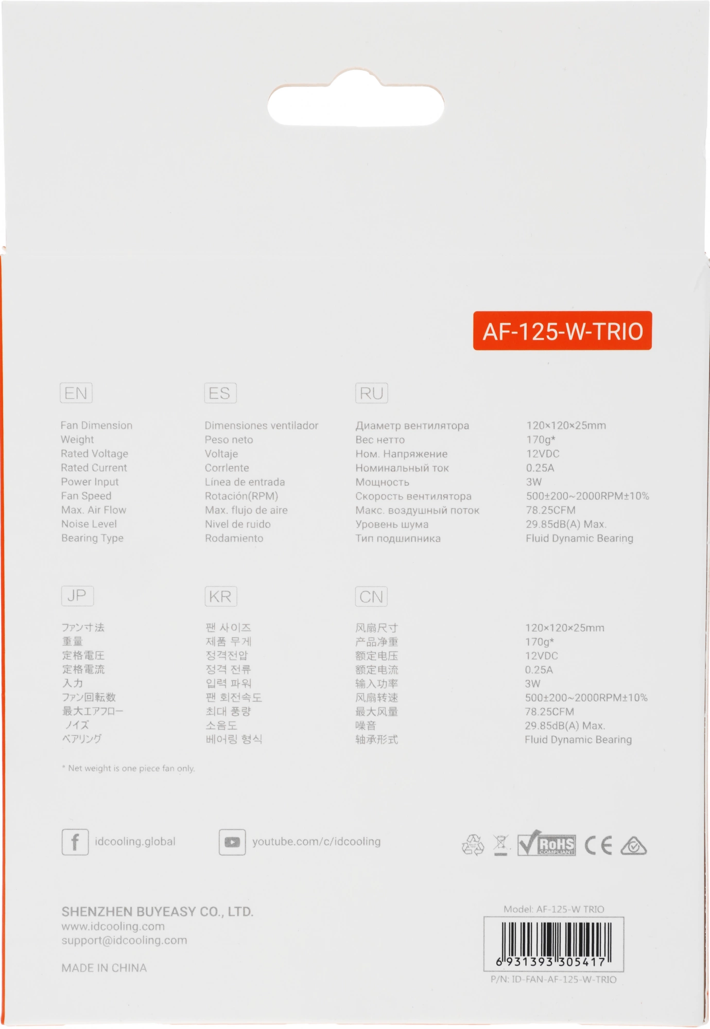 Вентилятор для корпуса ID-Cooling AF-125-W Trio 120х120x25 белый 4-pin 30дБ (упак.:3шт) Ret
