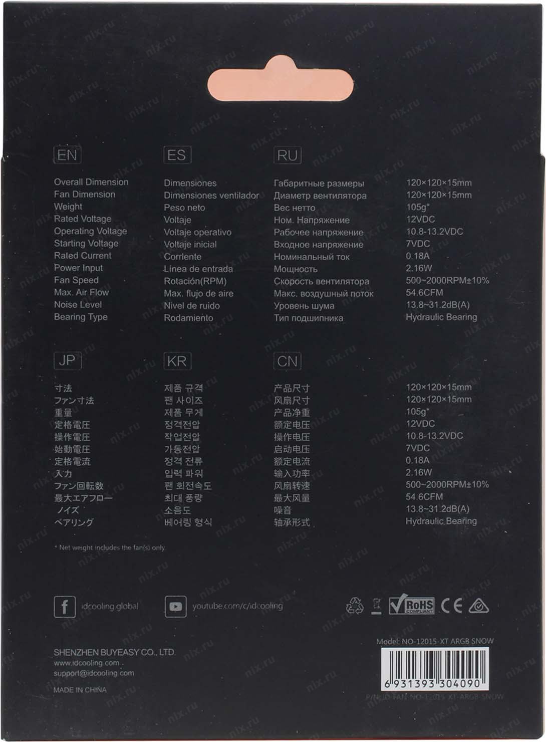 Вентилятор для корпуса ID-Cooling NO-12015-XT Snow ARGB 120х120x15 белый 4-pin 31дБ (NO-12015-XT ARGB SNOW) Ret