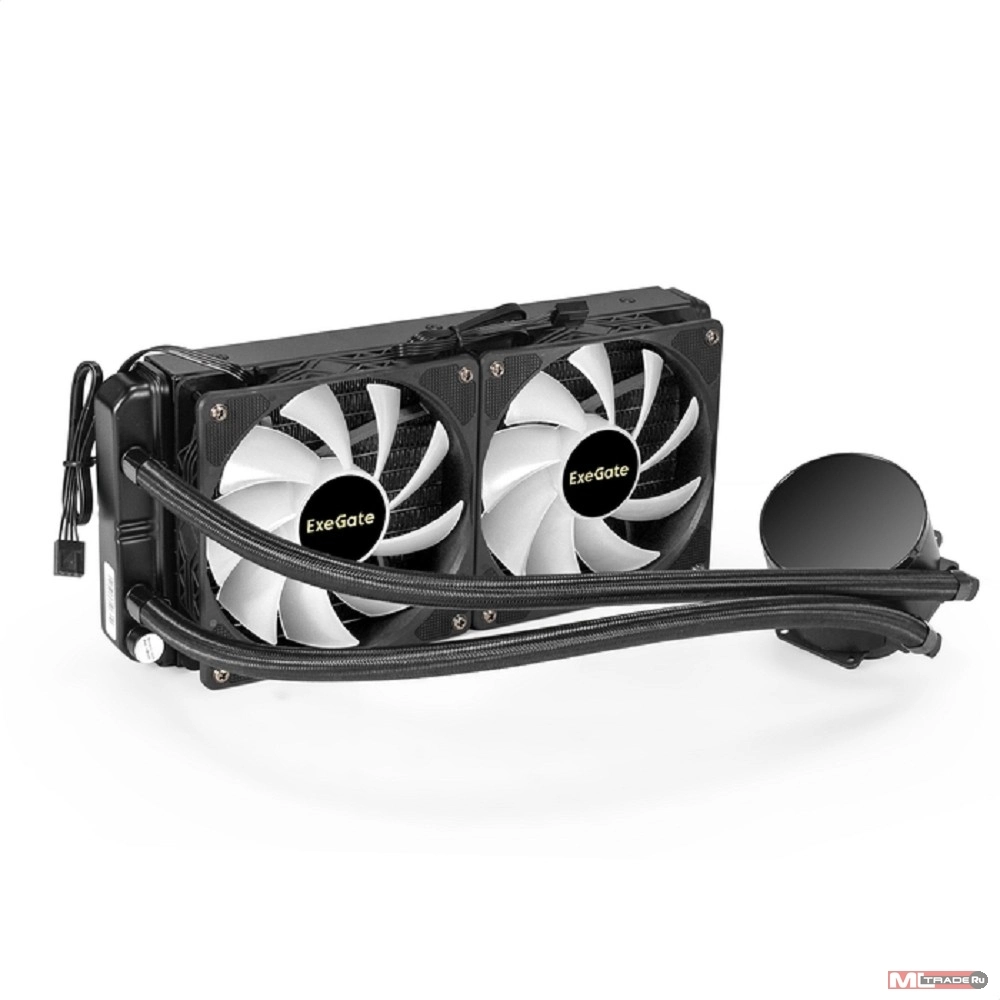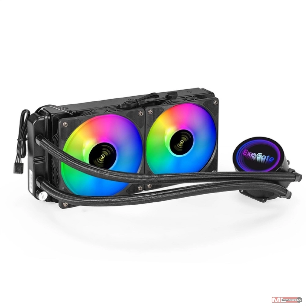 Вентиляторы Exegate EX293457RUS Комплект водяного охлаждения ExeGate BlackWater-240V2.PWM.RGB (RGB подсветка, LGA2066/ 2011/ 1366/ 1150/ 1151/ 1155/ 1156/ 1200/ 1700/ AM4/ FM1/ FM2/ FM2+/ AM2/ AM2+/ AM3/ AM3+, TDP 220W, Fan 120m