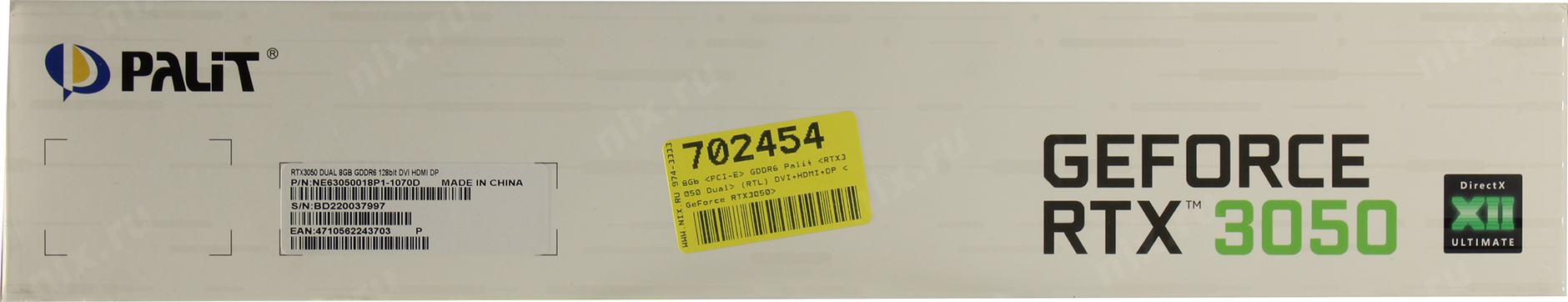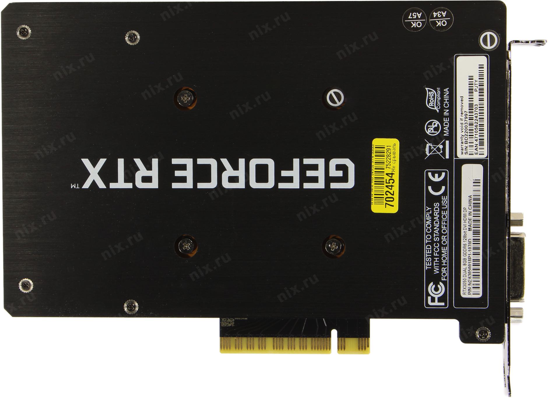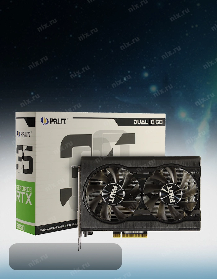 Видеокарта 8Gb <PCI-Ex8> GDDR6 Palit DUAL <NE63050018P1-1070D x8> (RTL) DVI+HDMI+DP <GeForce RTX3050>