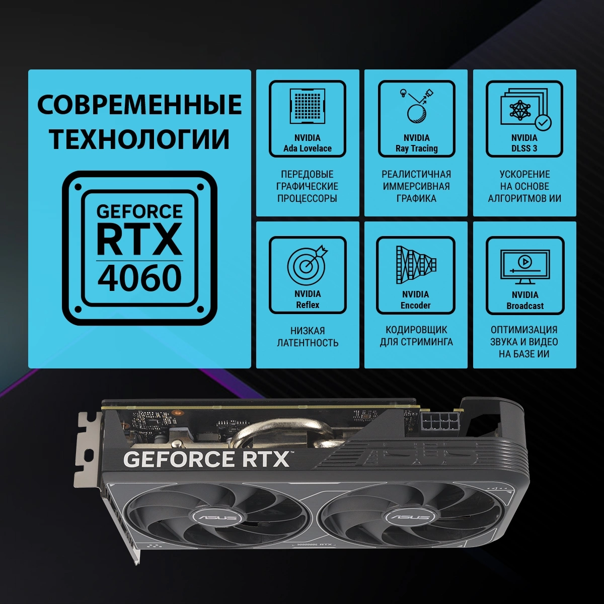 Видеокарта ASUS GeForce RTX 4060 DUAL V2 OC Edition 8GB GDDR6 128bit 3*DP/ HDMI (DUAL-RTX4060-O8G-V2) RTL