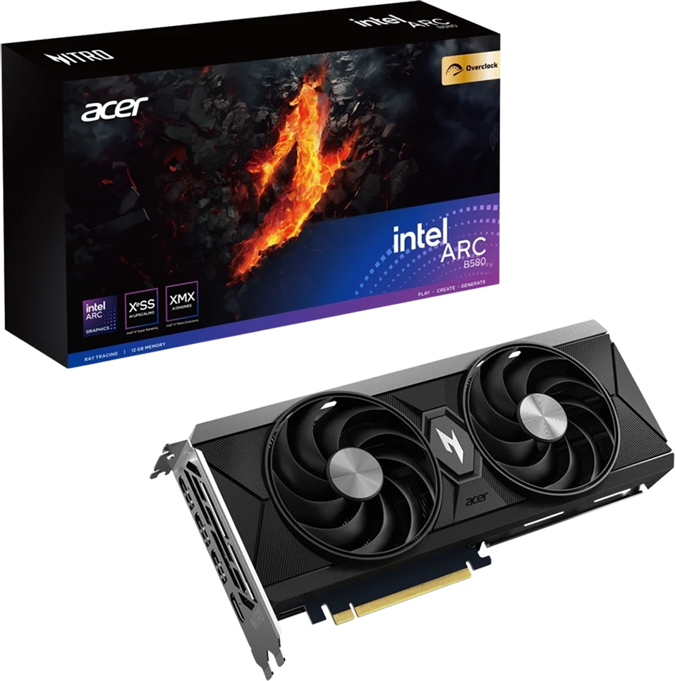 Видеокарта Acer B580 NITRO OC 12GB GDDR6 192bit 3xDP HDMI 2FAN RTL (Nitro Arc B580 OC 12G) DP.Z4BWW.P01