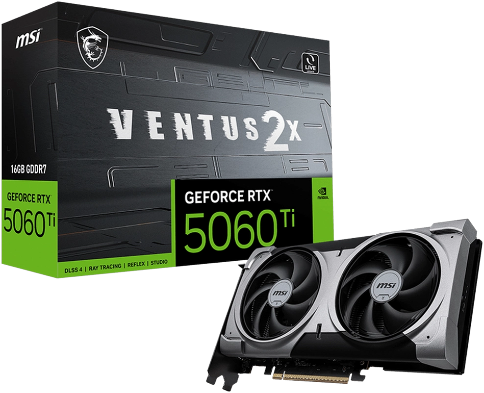 Видеокарта MSI RTX5060Ti VENTUS 2X PLUS 16GB GDDR7 128bit 3xDP HDMI 2FAN RTL [RTX5060TI16GVENTUS2XPLUS]