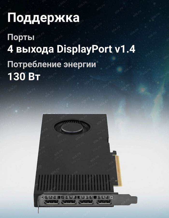 7680 x 4320 @ 60 Гц (30 bit) при подключении DisplayPort мониторов. Поддержка 4 дисплеев 8К с частотой 60Гц или 4 с разрешением 4К и частотой 120 Гц