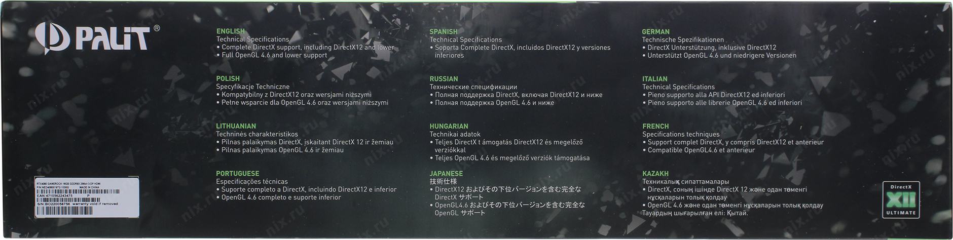 Размеры упаковки (измерено в никсе)