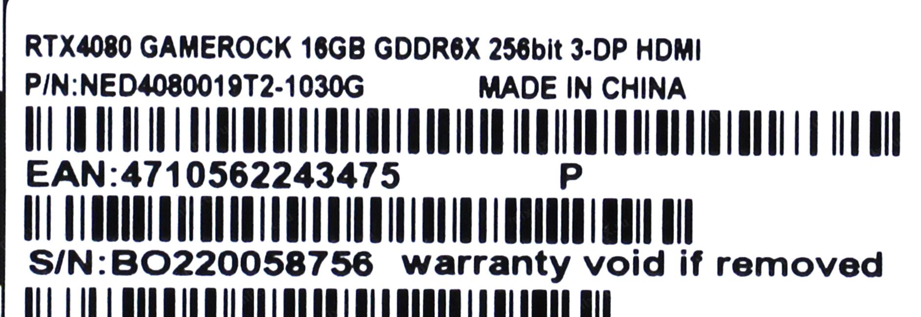 RTX4080 GAMEROCK 16GB GDDR6X 256bit 3-DP HDMI