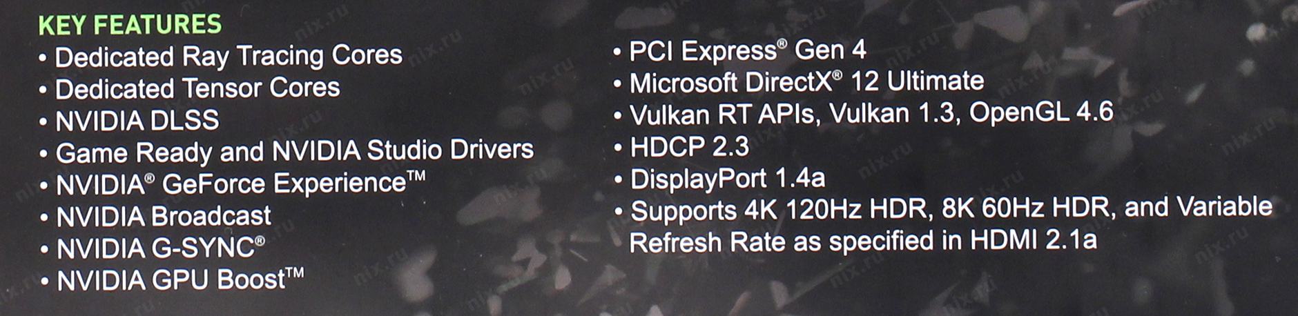 DSR (динамическое суперразрешение), GPU Boost (динамическое изменение тактовой частоты процессора), MFAA (многокадровое сглаживание), NVIDIA G-SYNC (плавный вывод кадров на монитор), NVIDIA PhysX-ready (использование более слабой видеокарты в качестве вспомогательного GPU), NVIDIA Ansel (создание игровых фотографий профессионального качества), NVIDIA GameStream-Ready (возможность трансляции игрового процесса на мобильные устройства), Real-Time Ray Tracing (технология трассировки лучей)