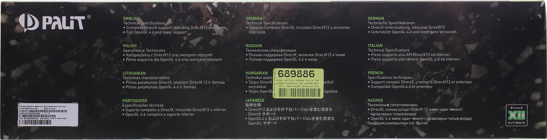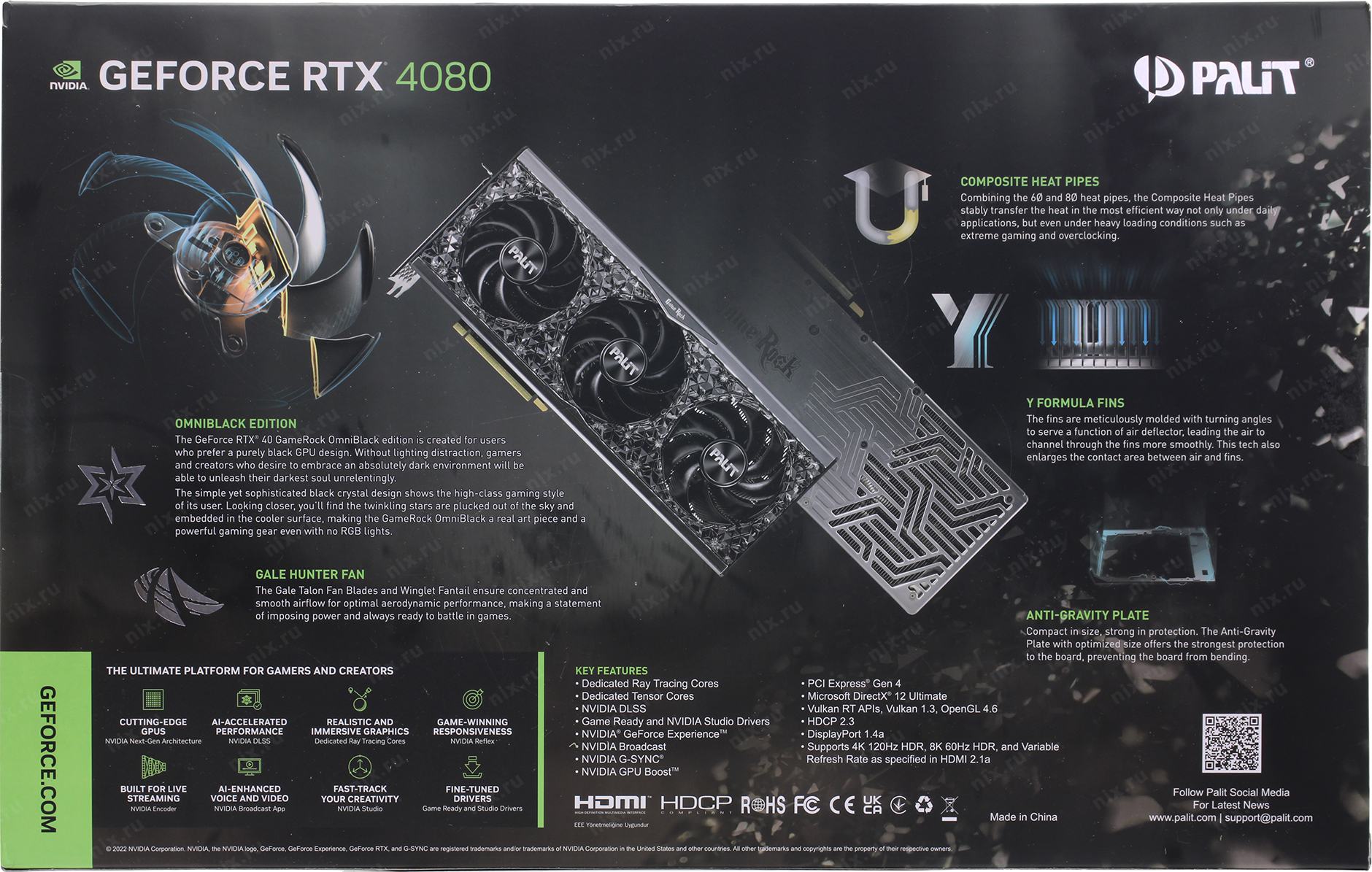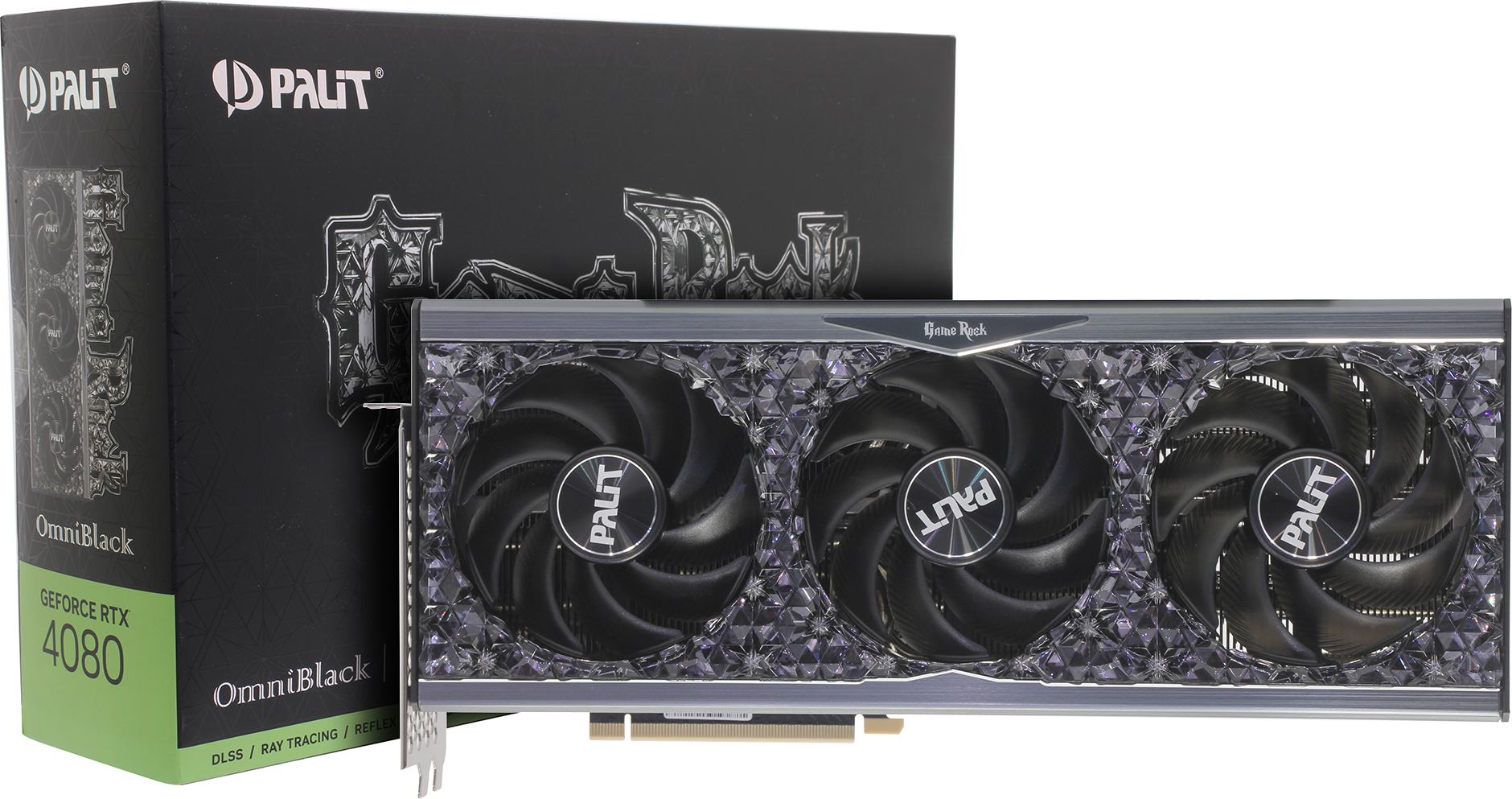 Видеокарта Palit RTX4080 GAMEROCK OMNIBLACK 16GB GDDR6X 256bit 3xDP HDMI 3FAN RTL (243482) (GeForce RTX 4080) NED4080019T2-1030Q