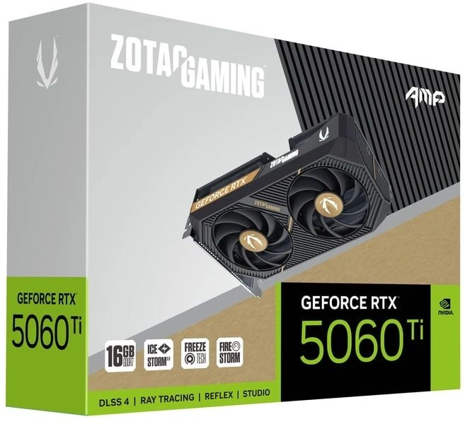 Видеокарта ZOTAC GAMING GeForce RTX 5060 Ti AMP 16Gb DDR7 128 bit 2407/ 2632 MHz 3*DP/ HDMI 2*FAN (ZT-B50620F-10M) RTL