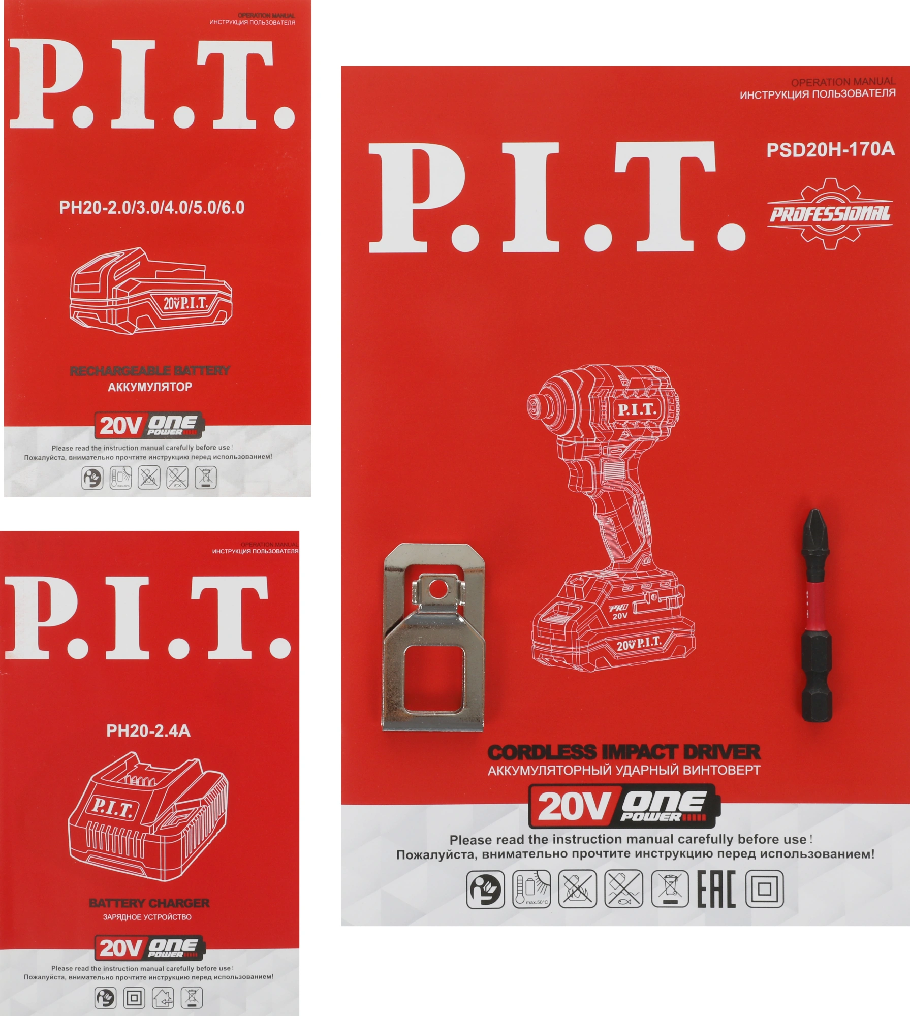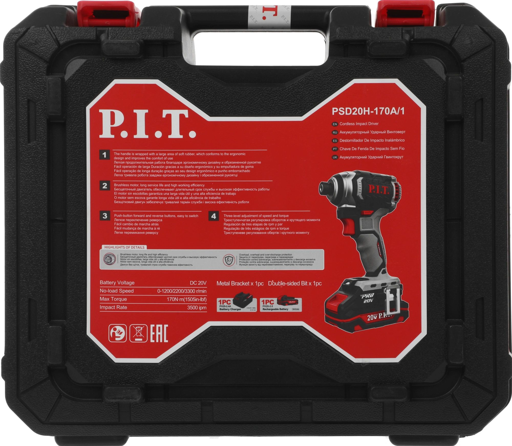 Винтоверт P.I.T. PSD20H-170A/ 1 аккум. патрон:держатель бит 1/ 4" (кейс в комплекте)