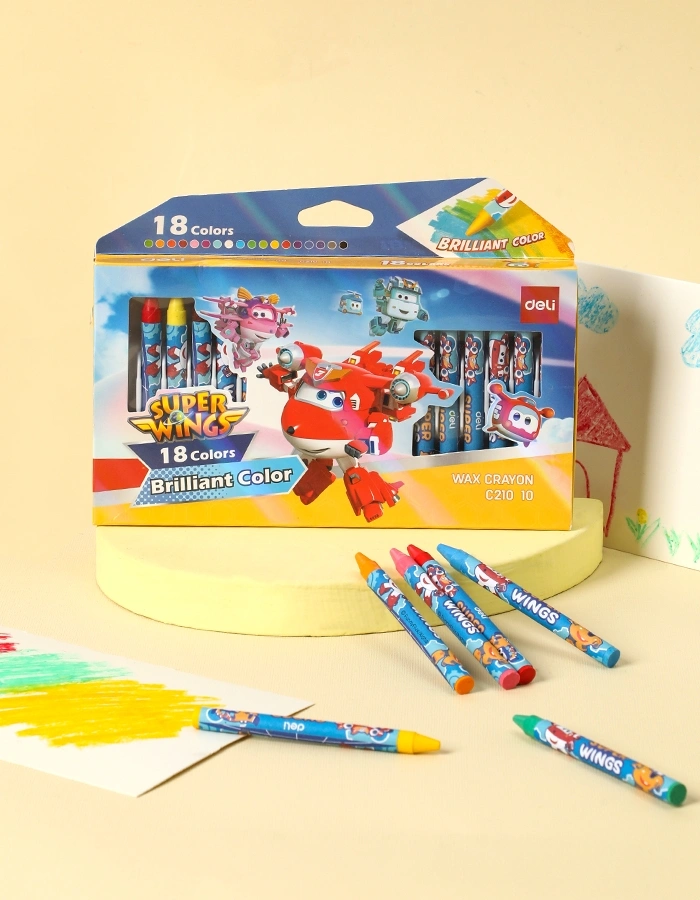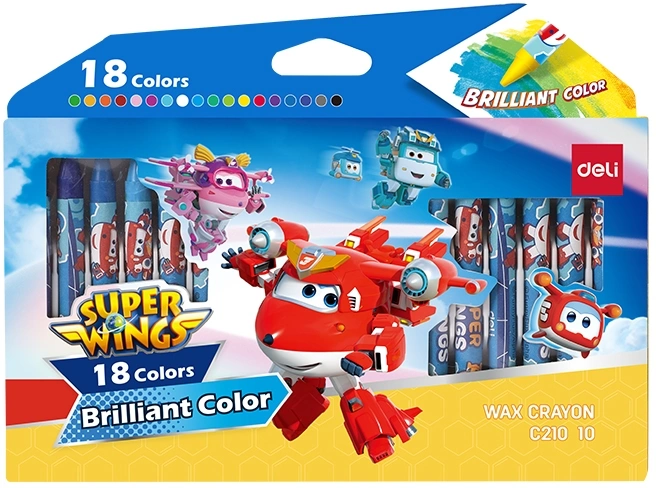 Восковые мелки Deli EC21010 Super Wings 18цв. картон.кор./ европод. (продается кратно 24 шт.)