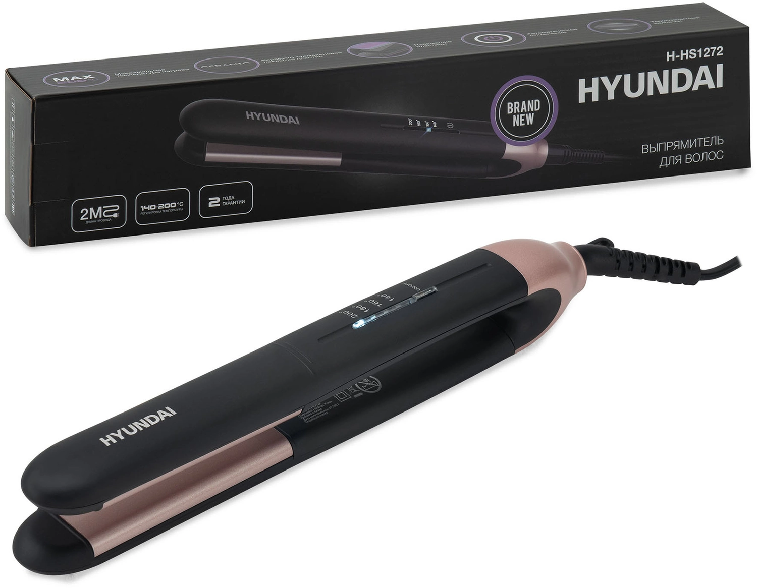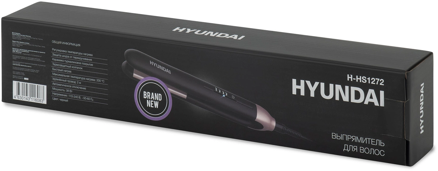 Выпрямитель Hyundai H-HS1272 40Вт черный макс.темп.:200С покрытие:керамико-турмалин овое