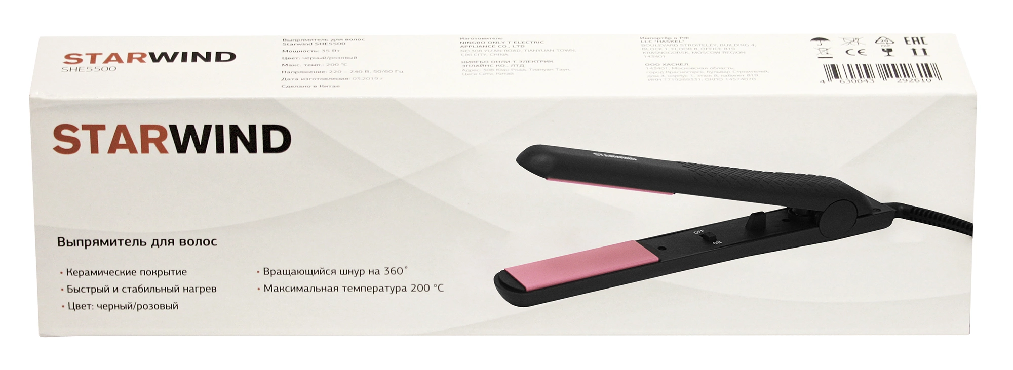 Выпрямитель Starwind SHE5500 25Вт черный/ розовый макс.темп.:200С покрытие:керамическое