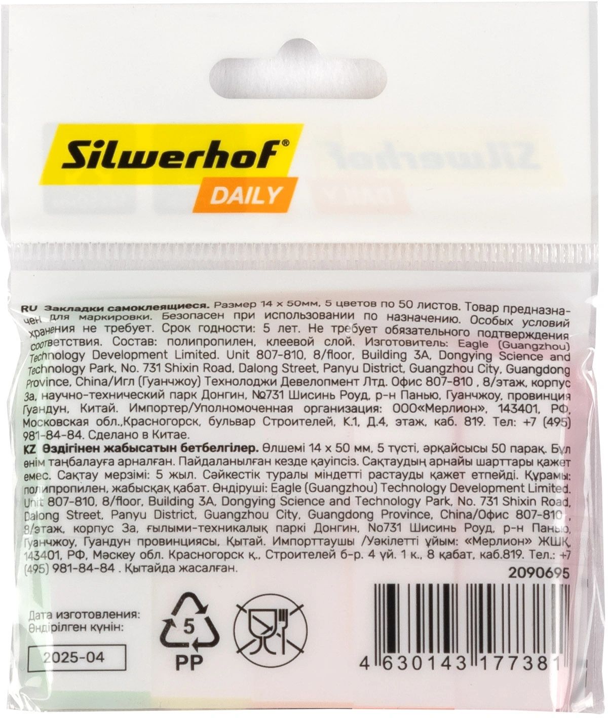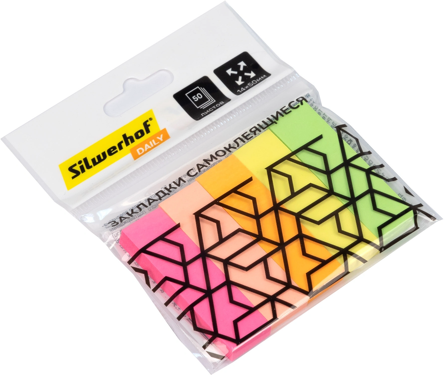 Закладки самокл. бумажные Silwerhof 50x14мм Daily 5цв.в упак. 50лист (продается кратно 12 шт.)
