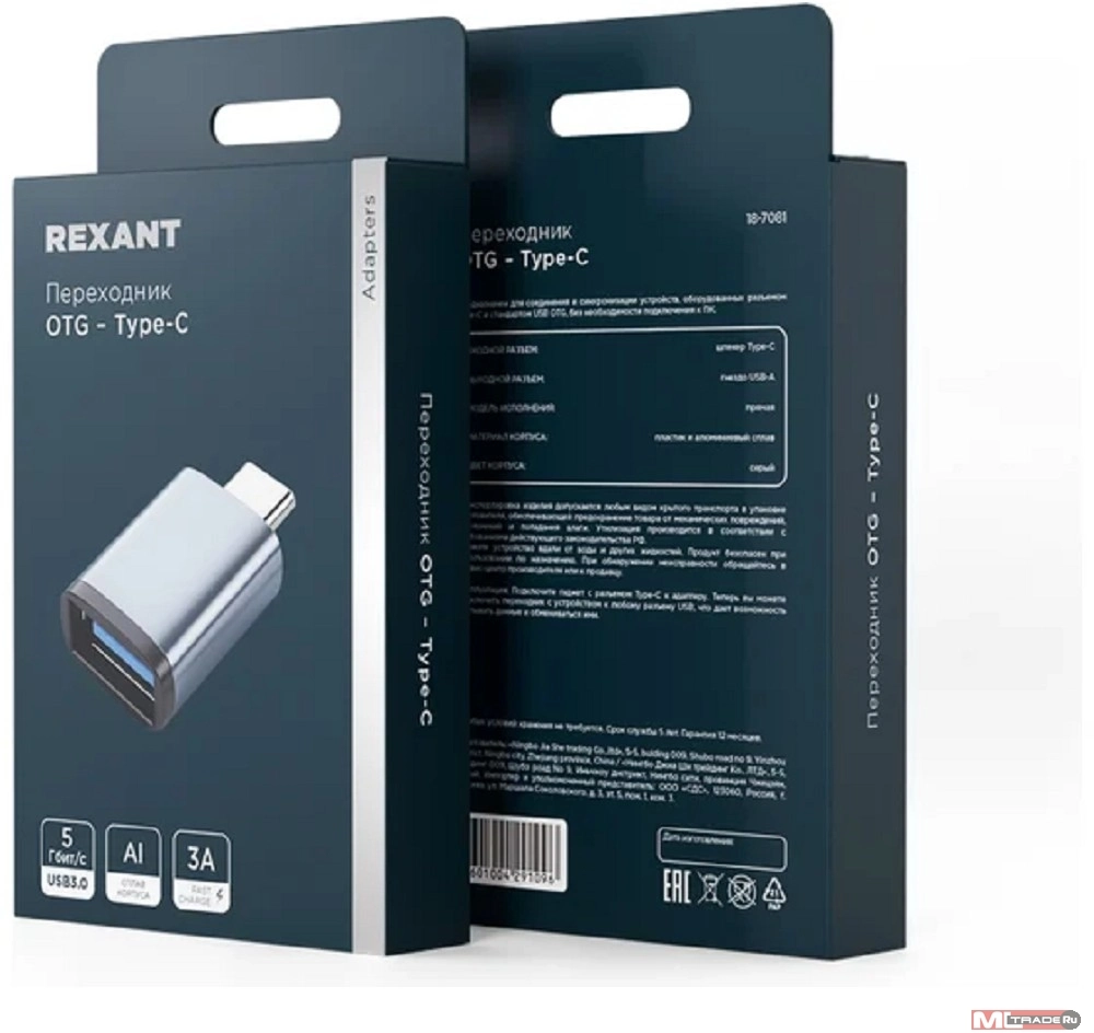 Зарядные устройства Rexant (18-7081) Переходник USB универсальный OTG – Type-C