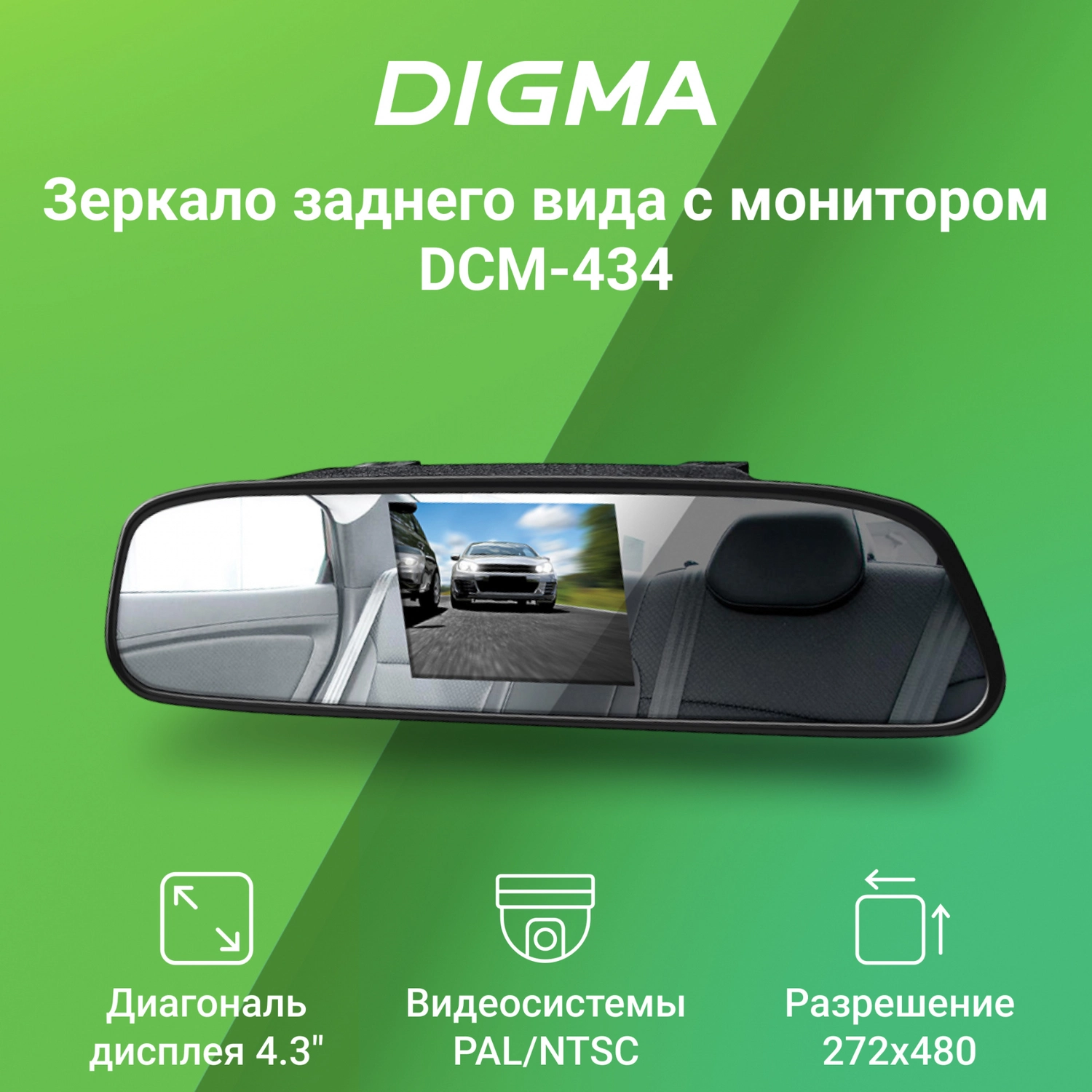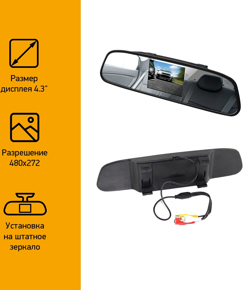 Зеркало заднего вида с монитором Digma DCM-434 4.3" 16:9 480x272 2.5Вт