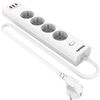 Сетевой фильтр Cablexpert Exnovo EXN-4-CU2-W-2 белый, Макс мощность 2500Вт, 3 розетки 220В, 10А, 2 розетки USB-A 5В, 1 розетка USB-C 30Вт PD, кабель 2м, ур.защиты 4+, коробка