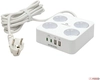 Сетевой фильтр универсальный Deli ET411/ 4розетки + 3USB , 2 м