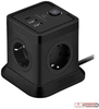 Сетевой фильтр Cablexpert Tower TWR-4-CU2-B-2 черный, Макс мощность 2500Вт, 4 розетки 220В, 10А, 2 розетки USB-A 5В, 1 розетка USB-C 20Вт PD, кабель 2м, ур.защиты 2+, коробка