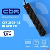 сбр сетевые фильтры CBR Сетевой фильтр CSF 2505-1.8 Black CB, 5 евророзеток, длина кабеля 1, 8 метра, цвет чёрный (коробка) [CSF2505-1.8BlackCB]