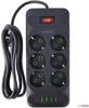 сбр сетевые фильтры CBR Сетевой фильтр CSF 2606-3.0 Black, 6 евророзеток, длина кабеля 3 метра, цвет чёрный (пакет) [CSF2606-3.0Black]