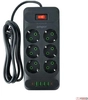 Сетевые фильтры Perfeo Сетевой фильтр " POWER+" , PF_A4674 (5, 0м, 6 розеток, черный (PF-PP-6/ 5, 0-B) )