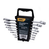 Набор комбинированных шарнирных ключей с трещоткой 8 шт Deli DL140208T размеры 8, 10, 12, 13, 14, 15, 17, 19мм, сталь 40Cr, трещотка 50BV30 72 зуба, пластиковый кейс
