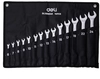 Набор комбинированных гаечных ключей 14 шт Deli DL130014B размеры 10, 11, 12, 13, 14, 16, 17, 18, 19, 21, 24, 27, 30, 32мм, матовая хромированная поверхность, чехол из ткани Оксфорд