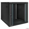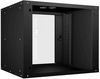 Шкаф HyperlineTWB-0945-GP-RAL9004 настенный 9U, 500x600х450мм, стеклянная дверь с перфорацией по бокам, ручка с замком, цвет черный (RAL 9004) (разобранный)