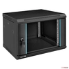 Шкаф HyperlineTWB-0645-GP-RAL9004 настенный 6U, 367x600х450мм, стеклянная дверь с перфорацией по бокам, ручка с замком, цвет черный (RAL 9004) (разобранный)